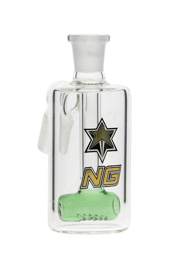 This ash catcher has a mini inline perc at the end of the down stem with slit cuts located on the bottom. The smoke is drawn downwards through the slits, reaching the base before rising back up and exiting. It creates more diffusion with the smoke having more contact with the water.
