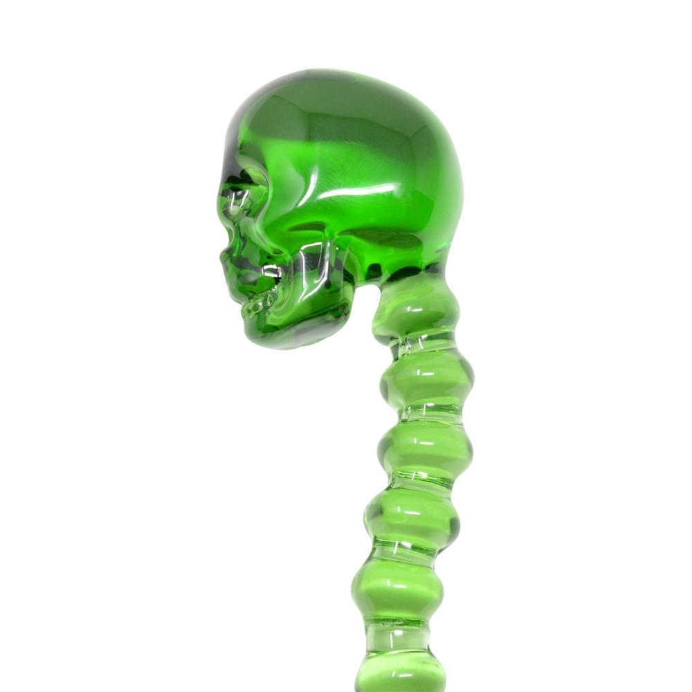 This 5″ long glass dabber features a detailed skull head and dabbing scoop at the end of the attached spine. Available in multiple colors.