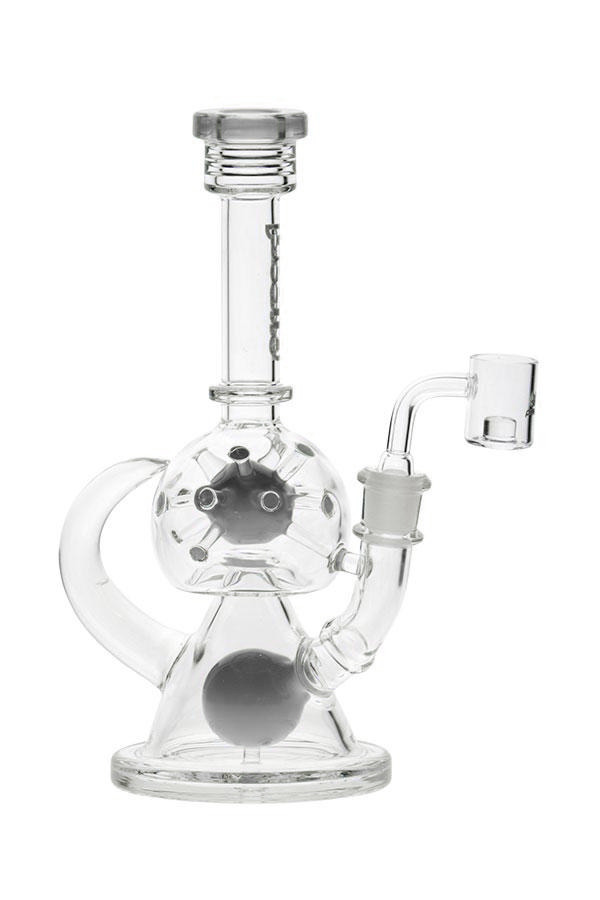 15-Arm inner space ball with ball percolator: The smoke exits the ball percolator before having to move around the arms of the spaceball for a second pass in cooling before exiting the mouthpiece.