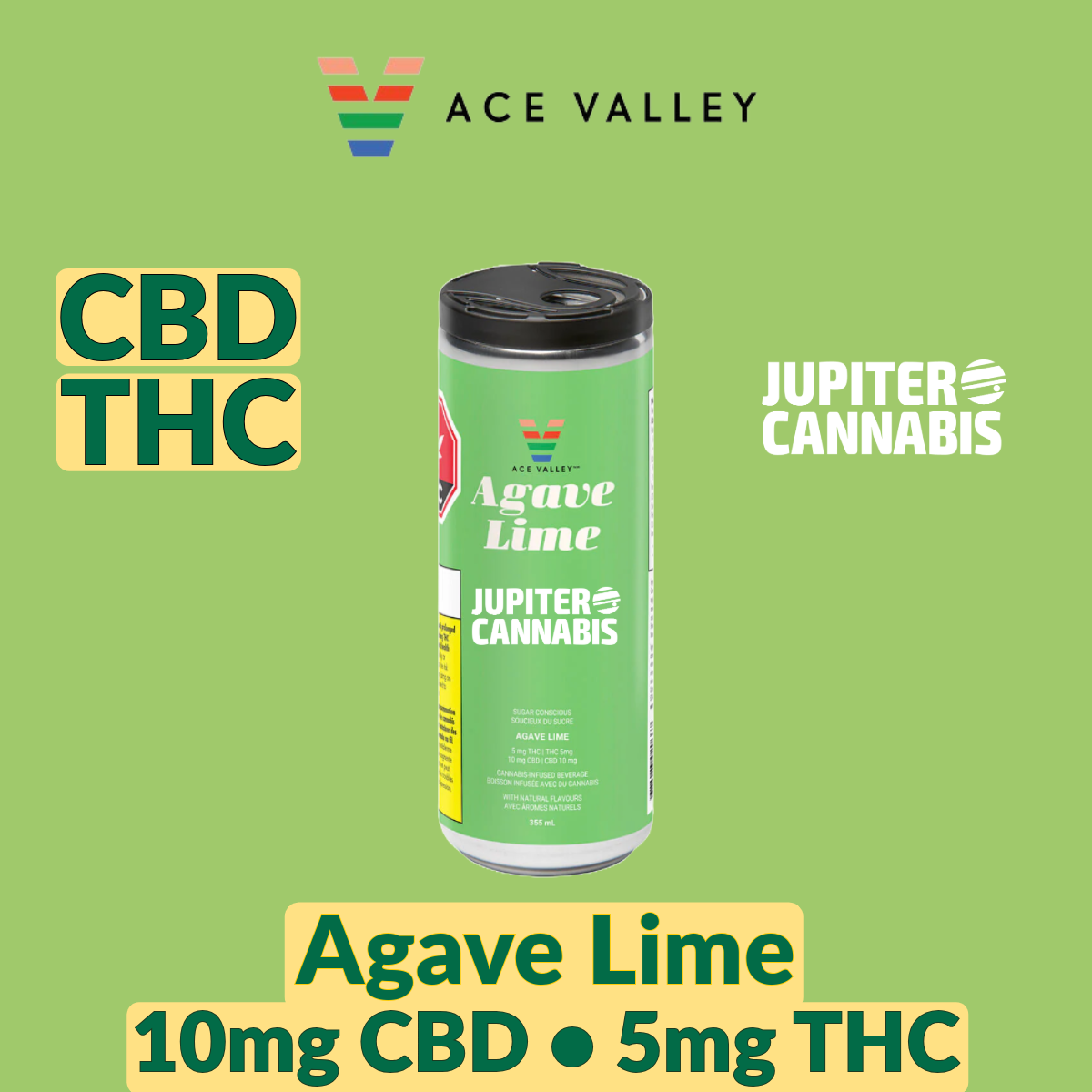 Say hello to Ace Valley Agave Lime. This invigorating, salty-sweet beverage brings the feeling of sun-kissed shores straight to your taste buds, with its bright, tangy lime flavour that is both vibrant and fresh. Made without sugar and features 10mg CBD and 5mg THC.