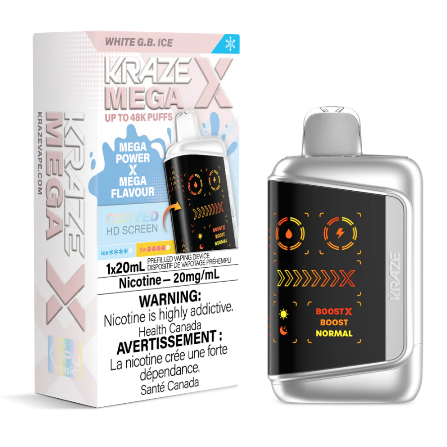 Kraze Mega X Disposable Vape – White G.B. Ice