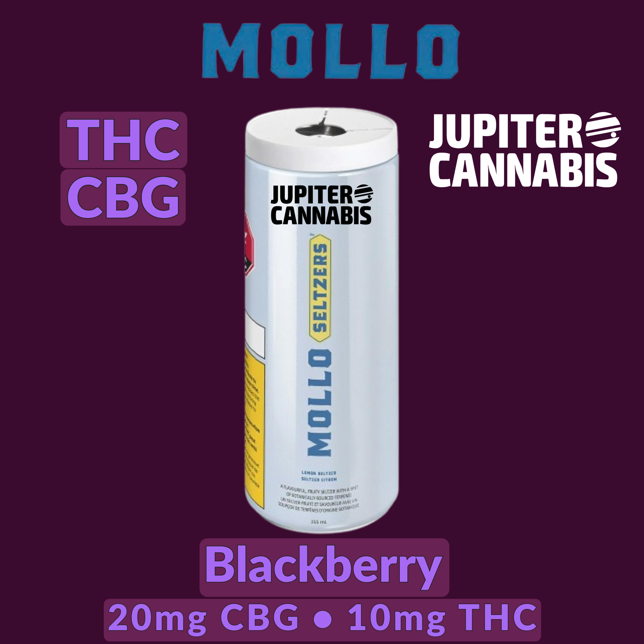 Sip back with Mollo Blackberry Seltzer. Taste the familiar effervescence and natural bold blackberry flavours infused with nano-emulsified 10 mg of THC and 20 mg of CBG. No Sugar!