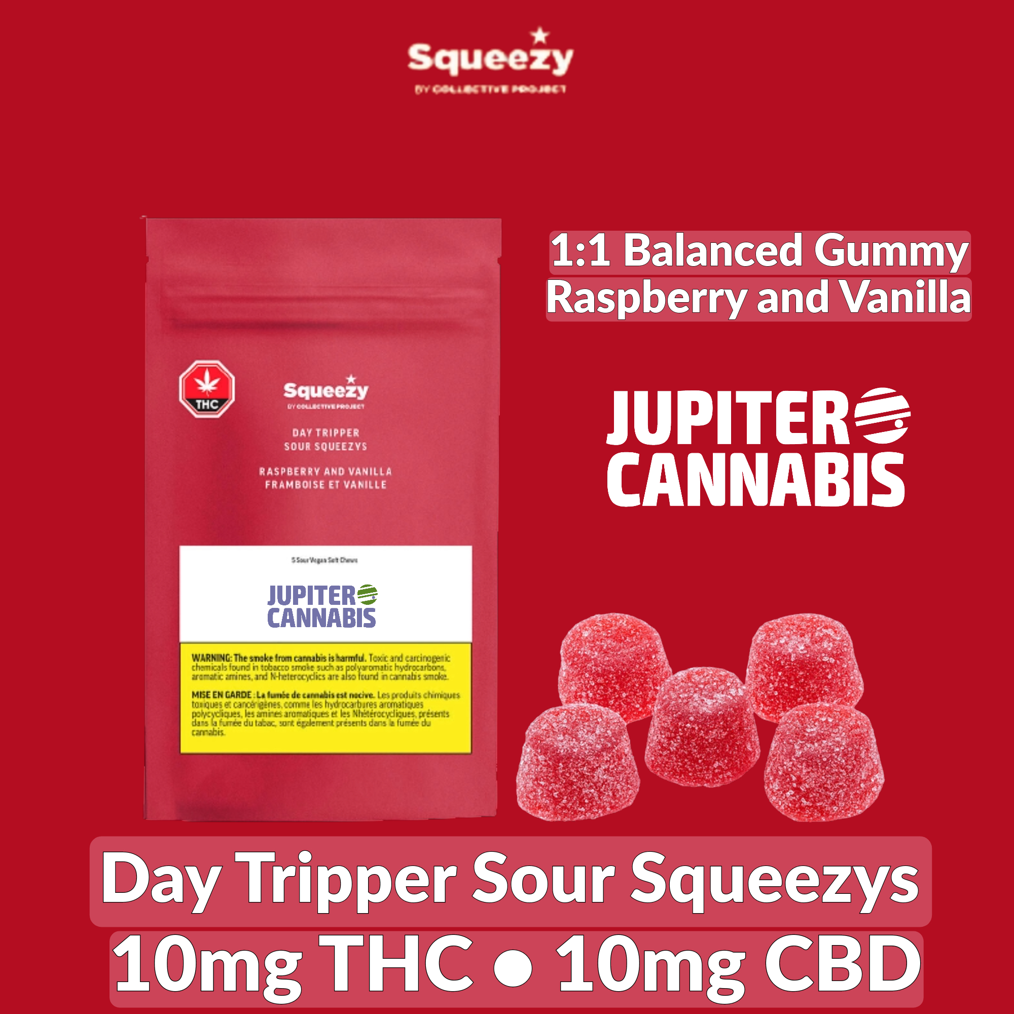 We took our favourite flavour combinations from our sparkling juices and jam packed them into our new line of soft chews. Collective Project sour soft chews are all built with a 1:1 dose. Inspired by our infused beverage, Day Tripper. Visions of warmer months, freshly picked raspberries and sweet vanilla ice cream will take hold with the first bite. These sour soft chews are dosed with 10 mg of THC and 10 mg of CBD.