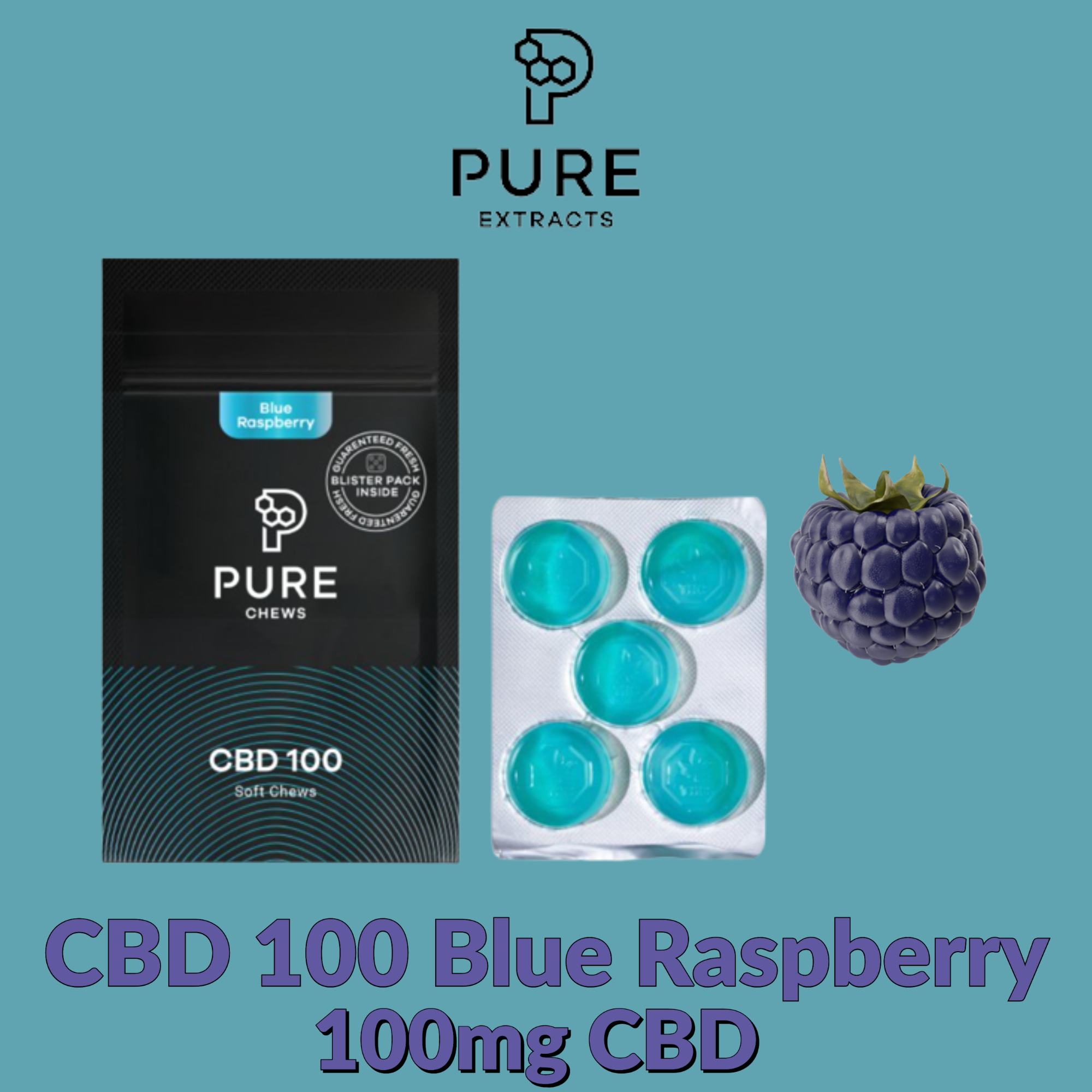 Pure Chews CBD 100 Blue Raspberry