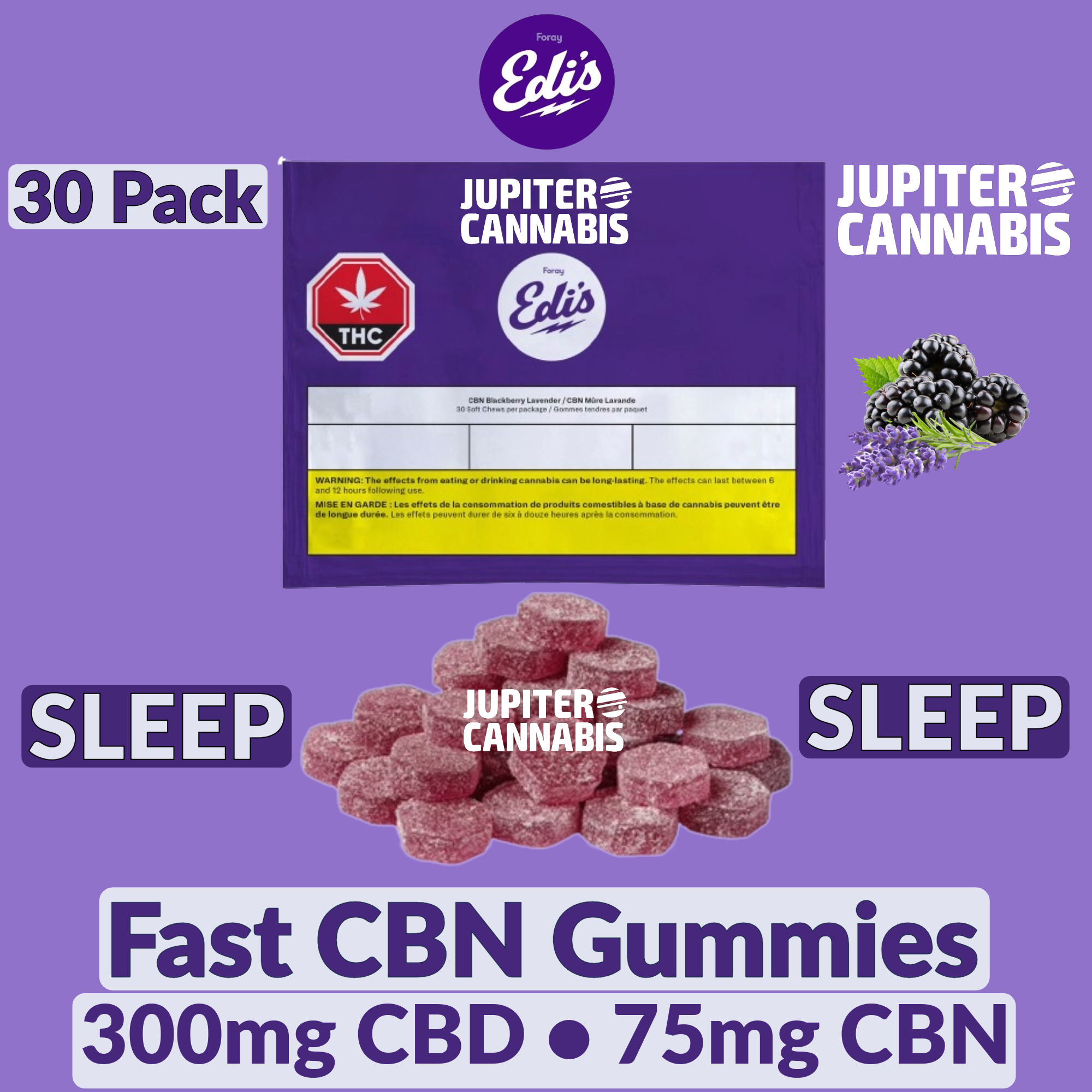 With a blend of blackberry and lavender, our CBN:CBD chews are so delicious they’ll have you dreaming of more. Available in our larger, 30-pack format. Each gummy has 10 mg of CBD and 2.5 mg of CBN. There is a total of 300 mg CBD and 75 mg of CBN per package of 30 gummies.