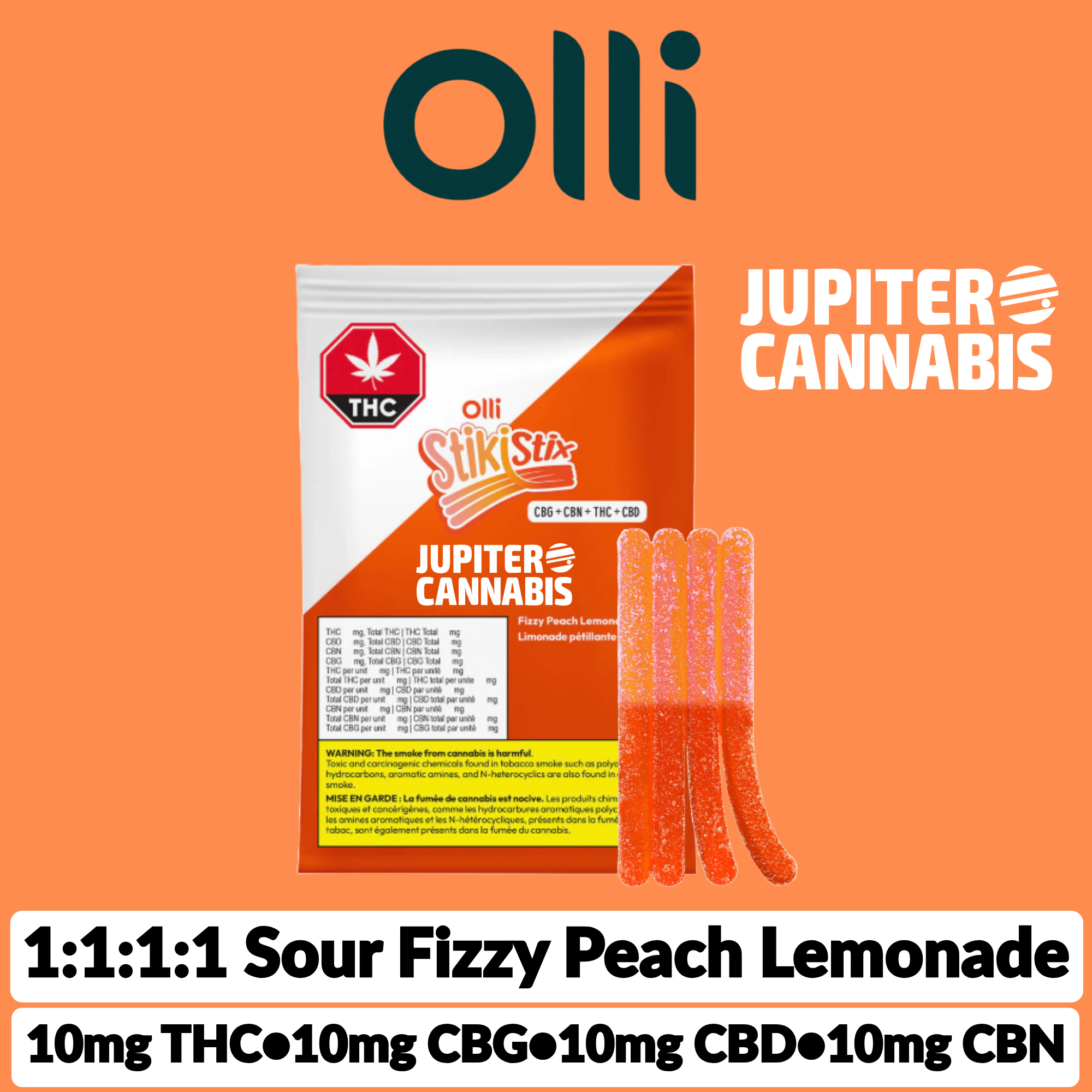 Olli StikiStix 1:1:1:1 Sour Fizzy Peach Lemonade CBG/CBN/THC/CBD