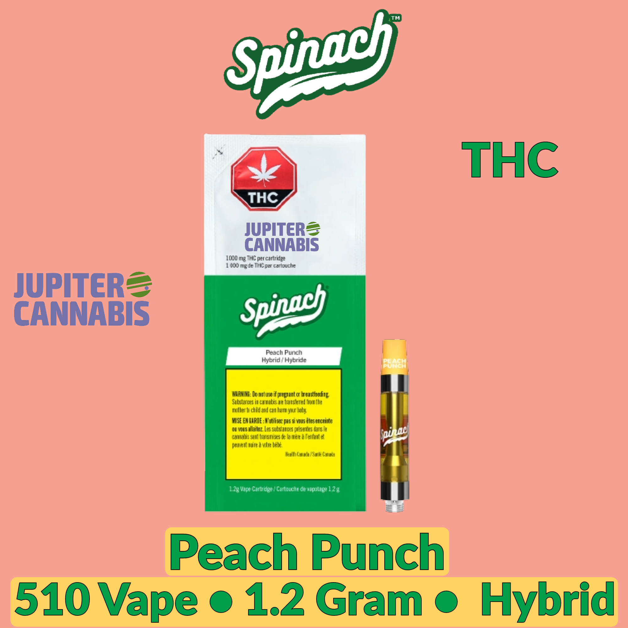 Life can be all peaches and cream when you’ve got a Spinach® Peach Punch 1.2g vape in hand. With inspiration from Peaches and Cream, a phenotype of the popular Skunk #1, you’ll enjoy the sweetest, freshest, peachy flavours ready for a full harvest. Thanks to the finest, highly potent, cannabis extract, we’re punching this one up to 1000mg of THC per cart.
