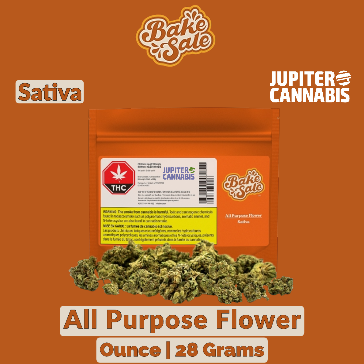 All Purpose Flower (Sativa) is a blended product of sativa-dominant whole buds with pungent aromas, packaged in a large format 28g pouch.