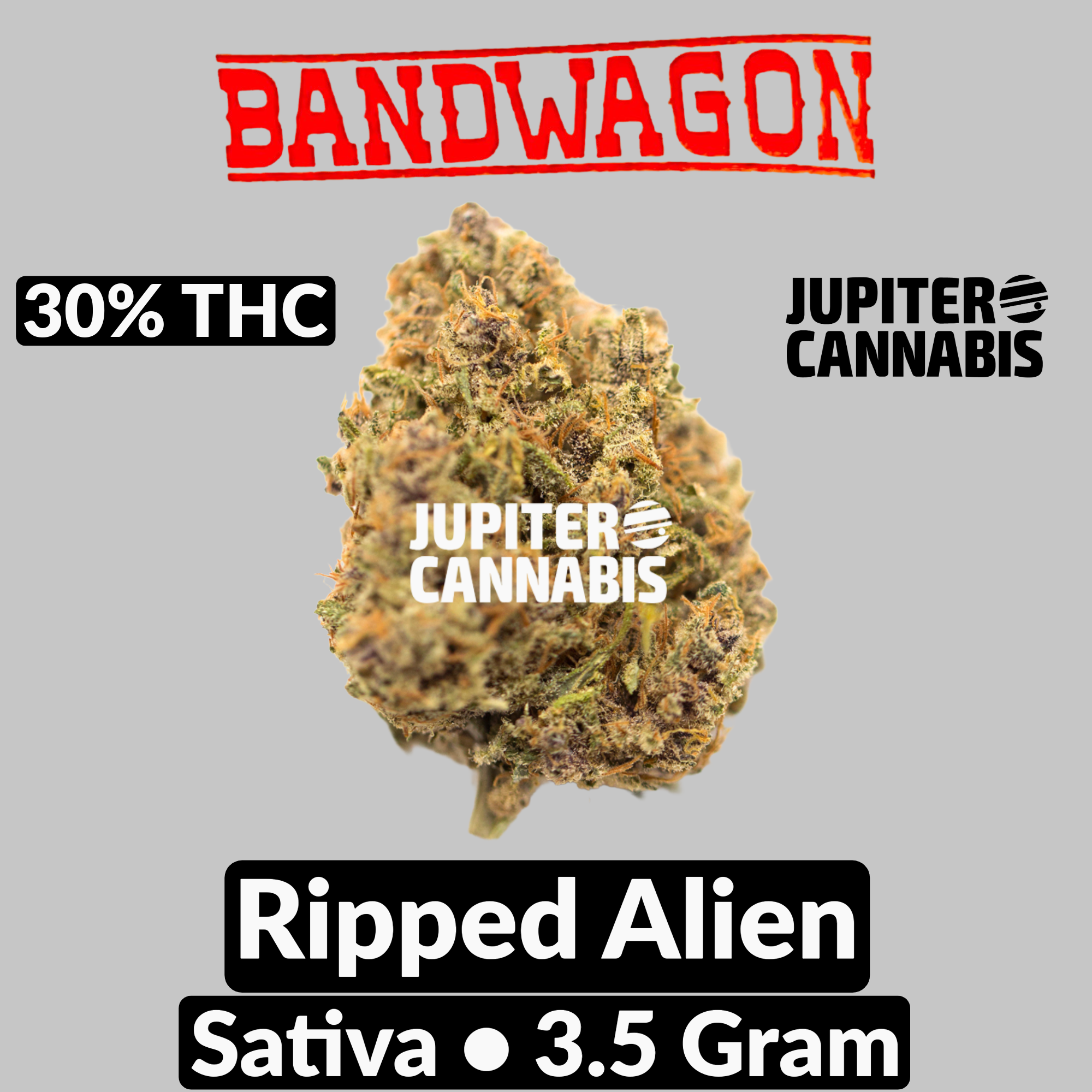 The Ripped Alien cannabis strain is an indica-dominant cultivar with a bold, gassy aroma and sweet citrus notes. Its THC content can be potent, with one producer, Bandwagon, listing a range of 29–32%