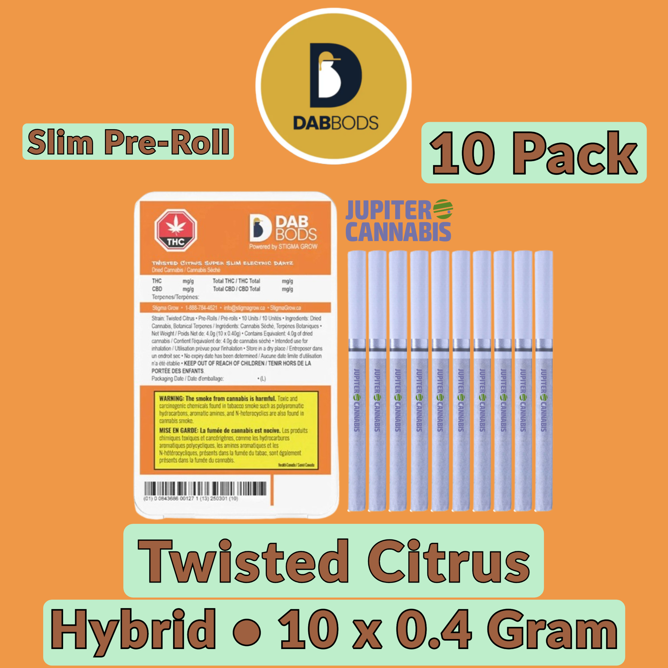 Dab Bods Twisted Citrus Super Slim Electric Dartz offer a refreshing twist on traditional pre-rolls. These slim, cigarette-style pre-rolls are expertly crafted and infused with botanical terpenes, delivering an extra burst of citrus flavor with every puff. Perfect for those who enjoy a smooth, flavorful experience, the Twisted Citrus Dartz offer a zesty, citrusy taste that’s as bold as it is refreshing. Ideal for on-the-go enjoyment, these sleek pre-rolls provide a modern, flavorful alternative to your usual smoke.