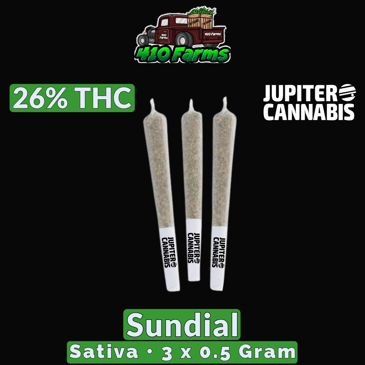 Embrace the vibrant energy of Sundial, our rotating sativa crafted to illuminate your day. Just as the sun traverses the sky, Sundial brings you a dynamic selection of premium strains, each chosen for its unique invigorating properties. Let Sundial guide you to your perfect daytime high. This is a 3 pack. Each joint is 0.5g.