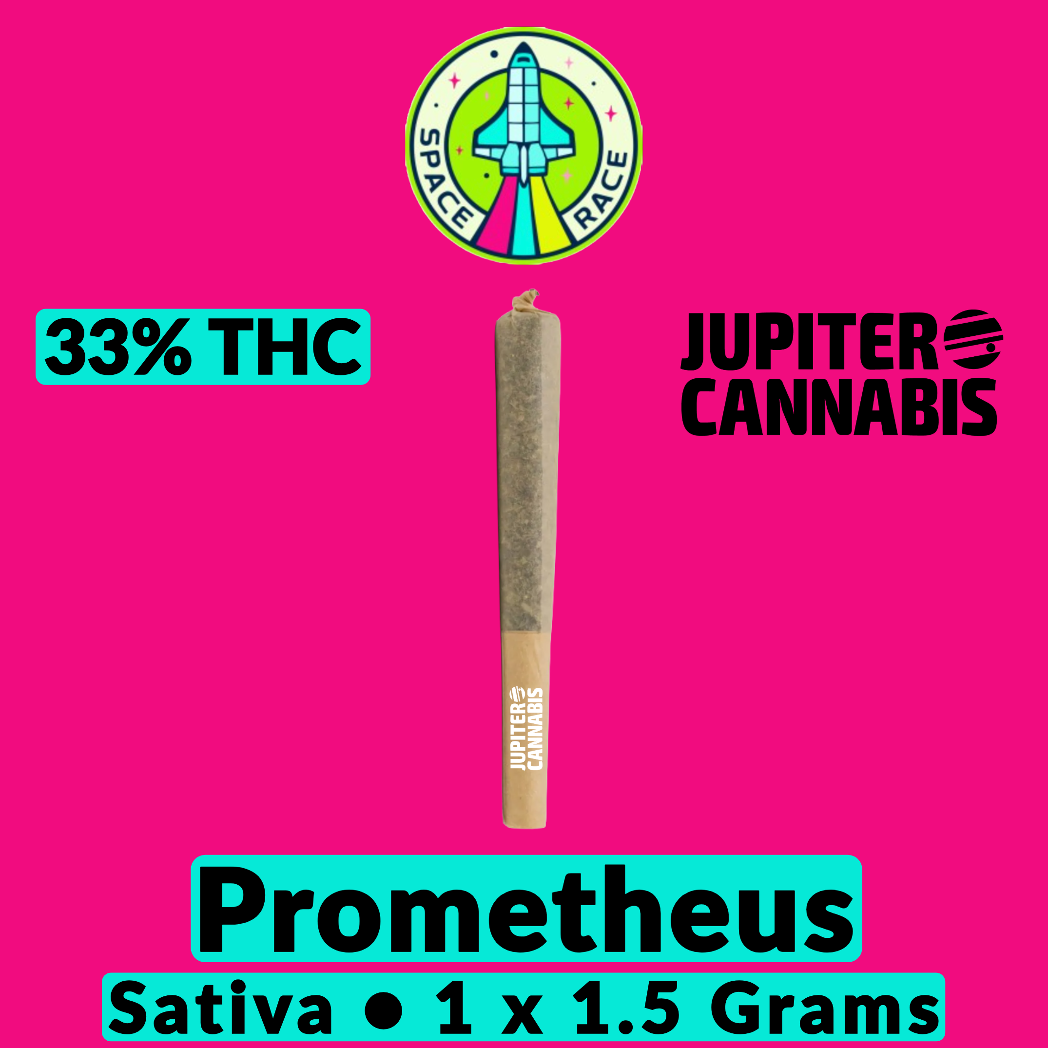 The Space Race Cannabis Prometheus 1.5g Joint is a single, high-grade sativa pre-roll known for promoting clarity and drive.