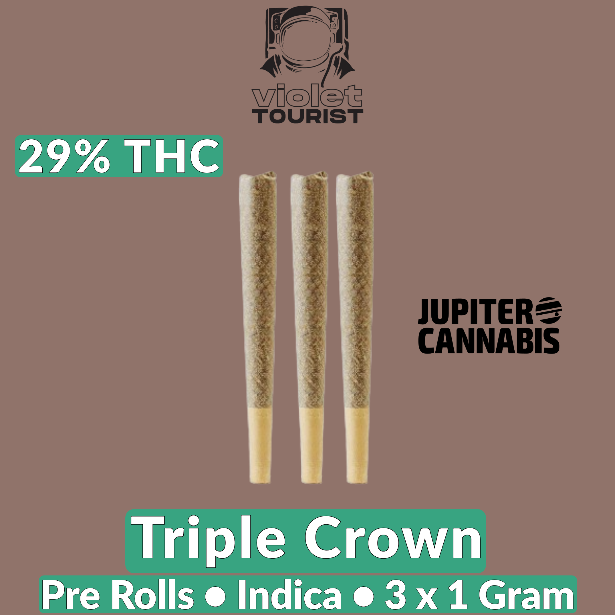Violet Tourist Triple Crown Rotational is an indica pre-roll pack containing 3-pack of 1.0g. Each pre-roll is crafted for relaxing and calming effects with 31.0% THC potency. Convenient and ready to enjoy. Available at Jupiter Cannabis in Winnipeg, Manitoba.